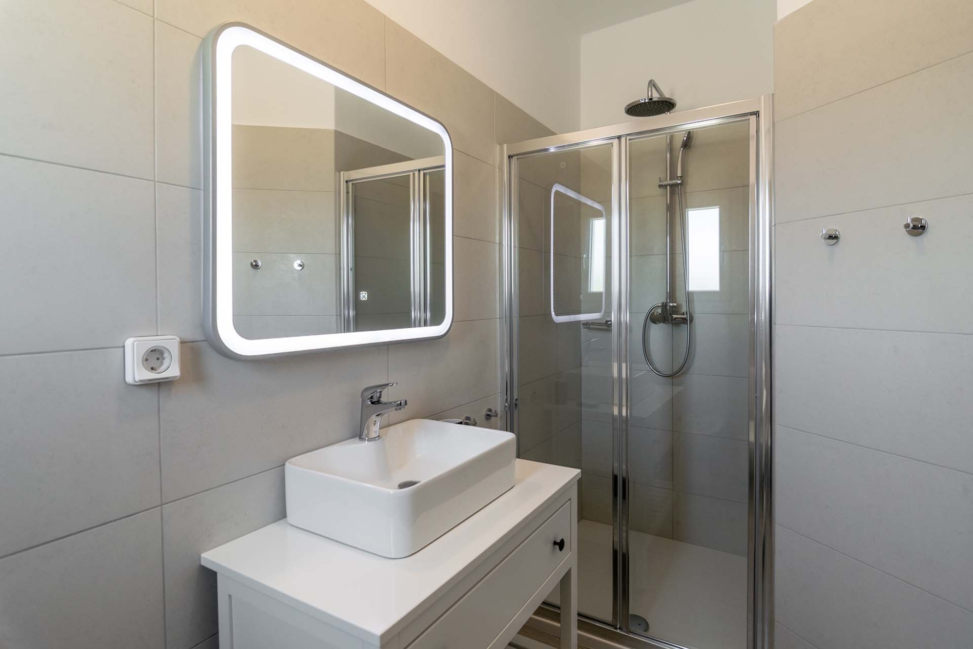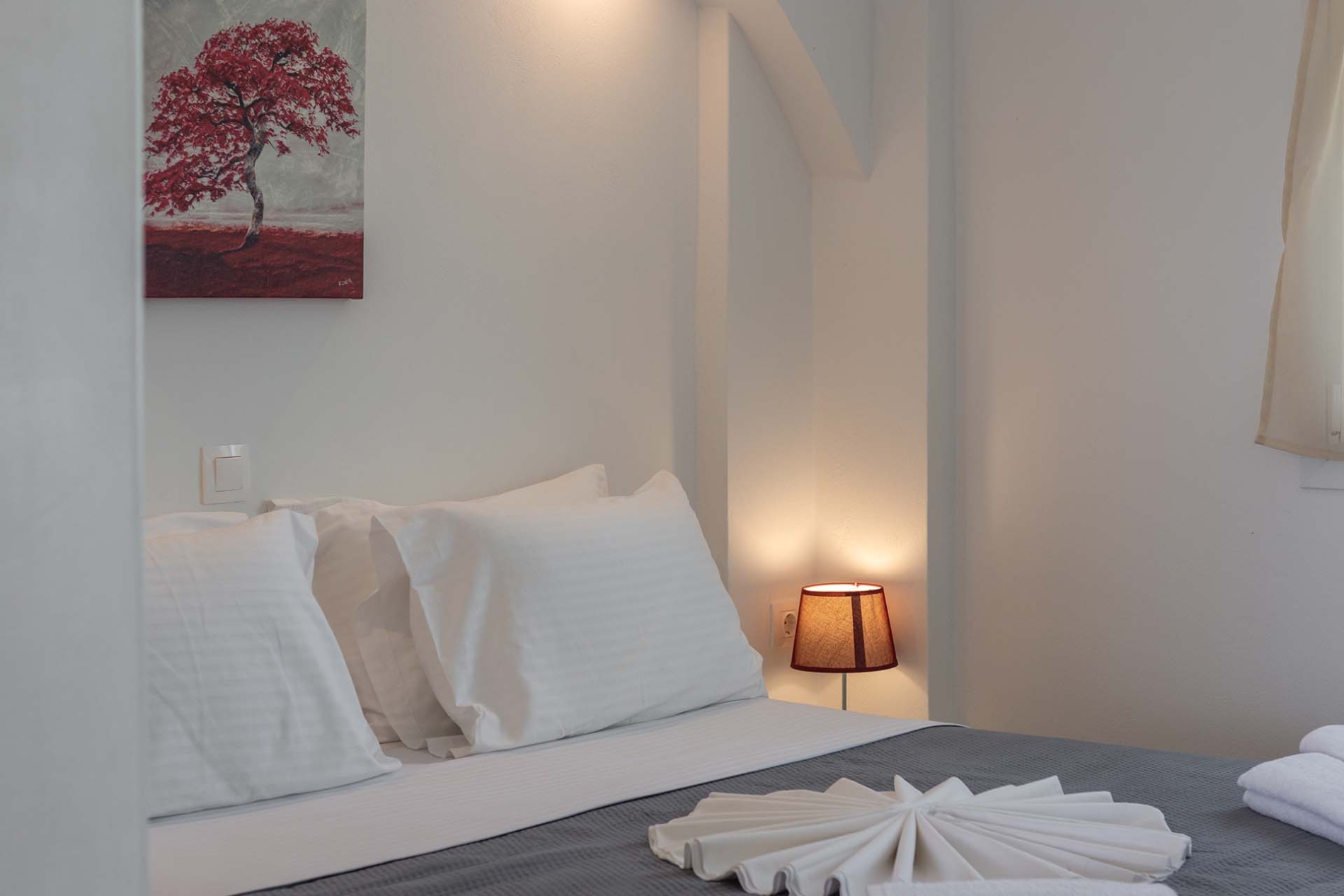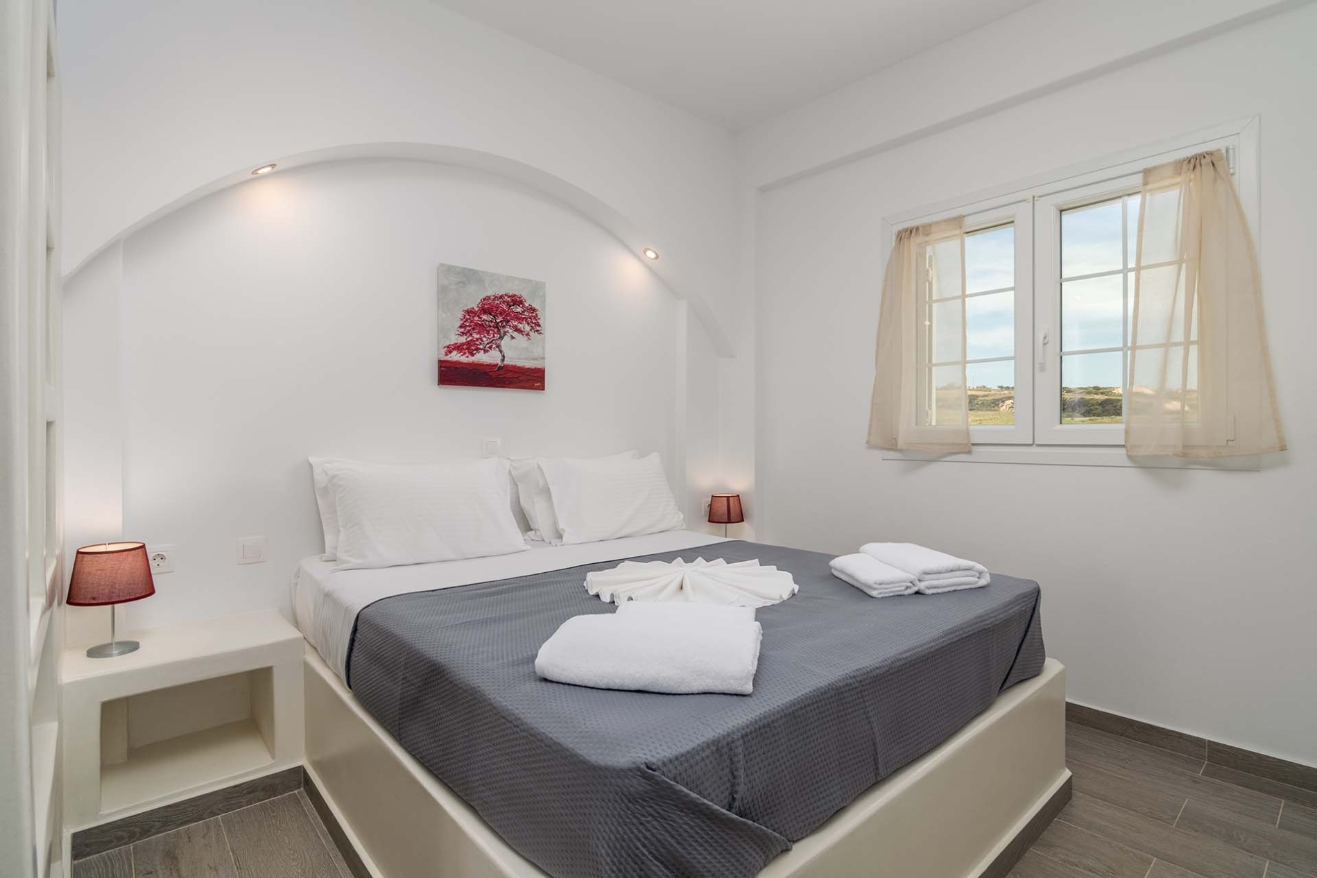 L'appartement de style cycladique allie confort moderne et charme traditionnel. Vous y trouverez un canapé confortable, une télévision grand écran et une salle de bains spacieuse. Accédez à la vaste terrasse panoramique équipée de transats et d'une table à manger, idéale pour prendre vos repas ou vous détendre en plein air.